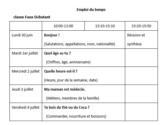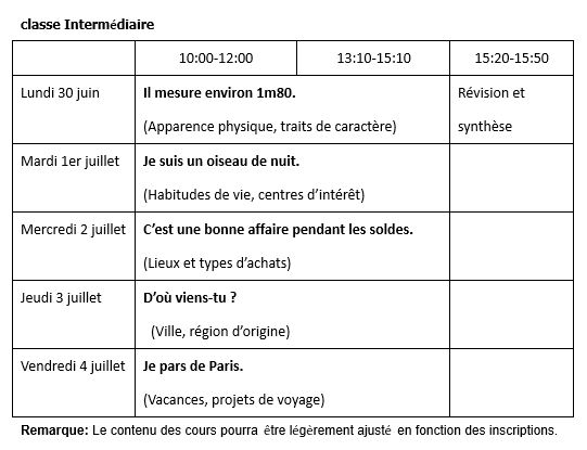 Voici le programme du state de chinois oral intensif de l’été 2025