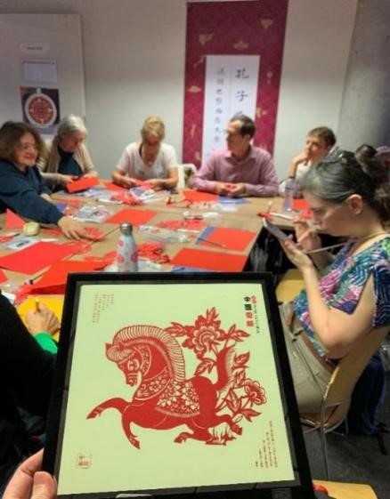 AI赋能,剪纸生花——巴黎西岱大学孔子学院非遗文化工坊活动