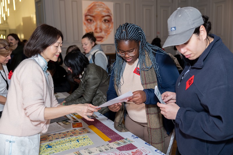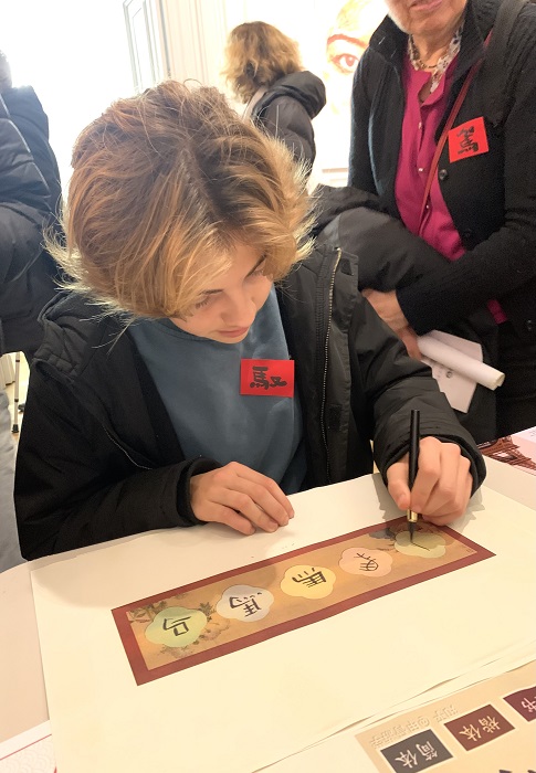 音乐会开始前一小时,孔院在13区政府展览厅举办首届“光影中国”摄影比赛颁奖仪式及新春文化体验活动。本次摄影比赛共收到20余位参赛者提交的126幅作品,集中展现了学员眼中的中国文化与社会风貌。“马年写马”“新春送福”和印章拓印是当天最有吸引力的文化体验活动,众多法国民众排队参与,现场洋溢着浓厚的中国年氛围。(图8、9、10)