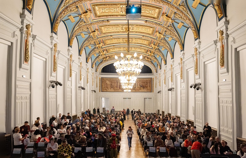 法国时间2月13日晚,由巴黎西岱大学孔子学院与巴黎13区区政府联合主办的2026马年新春叙事音乐会《一扇春来》在13区政府节庆大厅隆重举行。孔院法方院长张香筠、中方院长刘莉妮、13区议员陈家辉、中国驻法国使馆教育处秘书程静、李琦和孔院师生及法国各界民众400余人共同欣赏了演出,欢庆马年春节的到来。(图1)