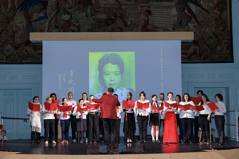 Ces dernières années, l’Institut Confucius de l’Université Paris Cité n’a cessé d’innover dans ses formes d’enseignement et d’activités culturelles. Le « Chinese Corner », lancé en 2023, rencontre un franc succès auprès des apprenants en combinant échanges thématiques linguistiques et apprentissage de chansons chinoises. En 2026, l’Institut a officiellement créé la « Chœur Céleste ». En clôture du concert, enseignants et apprenants ont interprété ensemble la chanson chinoise « Ru yuan », rendant hommage aux générations qui ont contribué aux échanges culturels entre la Chine et l’étranger. La mélodie chaleureuse et sincère a porté l’ambiance de la salle à son apogée. (Image 7)