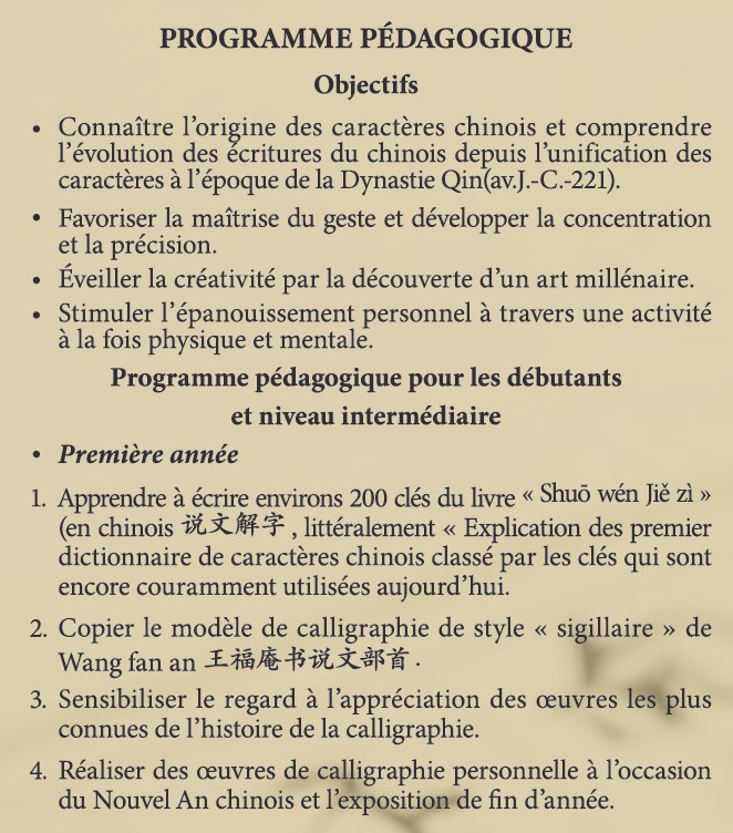 Cours débutant de M. WANG : Lundi 16h15 à 18h15